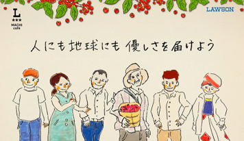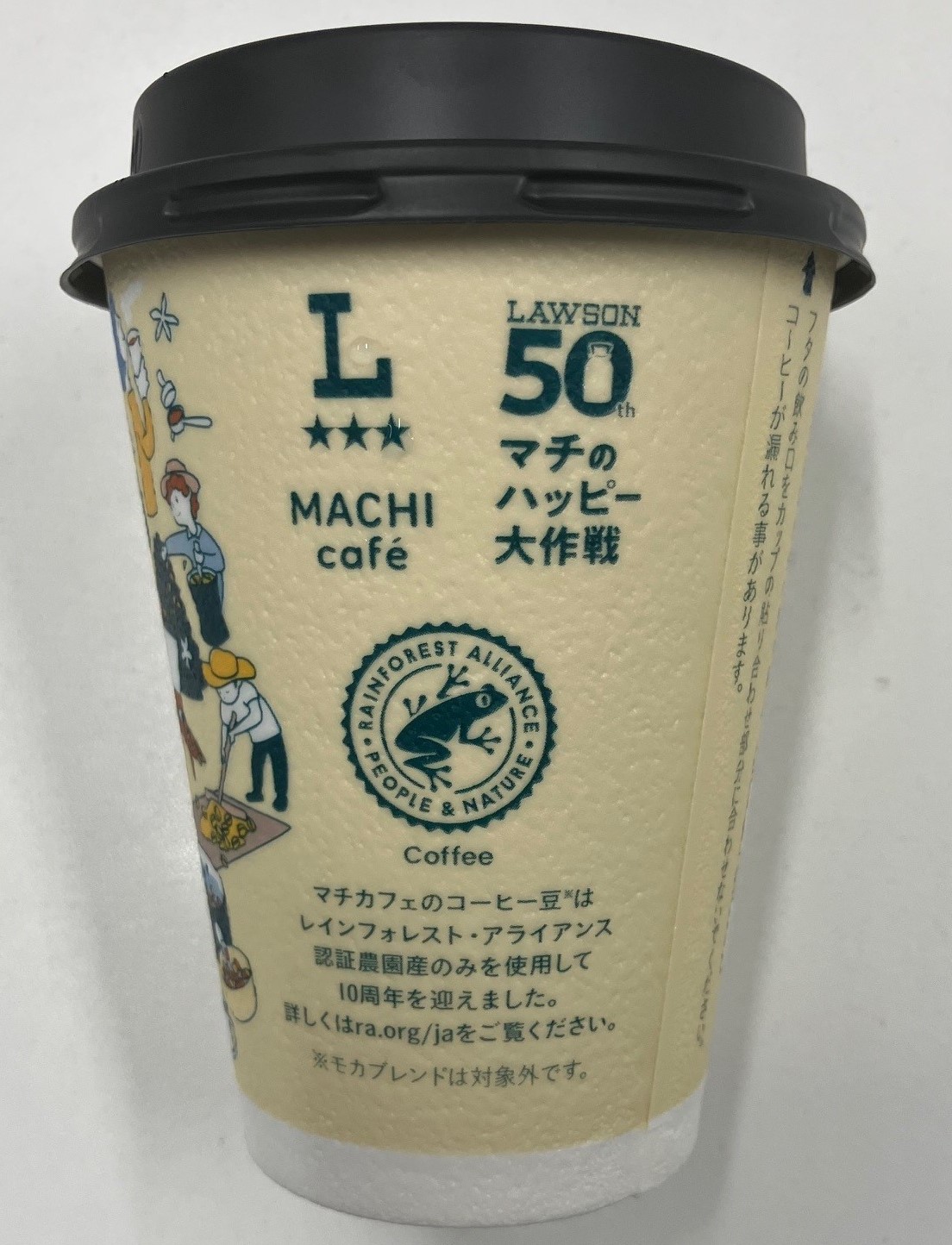 10月1日の国際コーヒーの日にあわせ、持続可能なコーヒー栽培について考えるきっかけづくりとして、9月30日(火)から順次、店内淹れたてコーヒー「MACHI café」のホット用カップ(Sサイズ・ Mサイズ)のデザインを、「レインフォレスト・アライアンス認証」農園産コーヒー豆使用(※モカブレンドを除く)10周年の記念イラストに数量限定で切り替えます。今回変更するイラストには、「レインフォレスト・アライアンス認証」農園産のコーヒー豆(アラビカ種)の生産の様子などが描かれています。