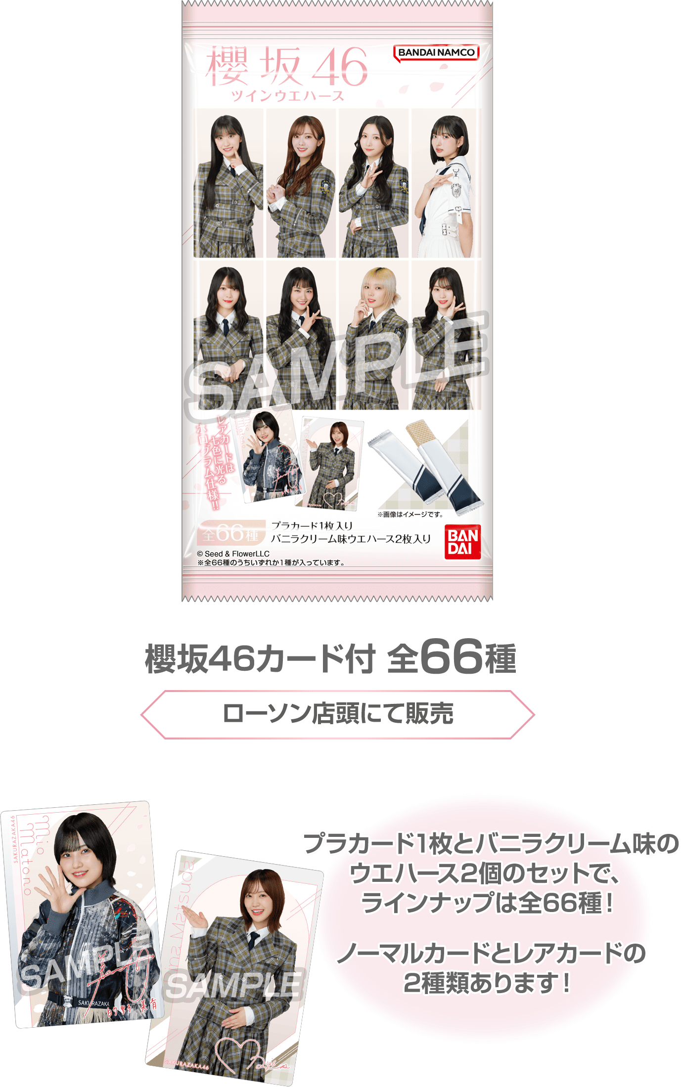 10月21日(火)よりPontaカードまたはdポイントカードを提示して、対象商品を100円(税込)購入ごとにローソンアプリにスタンプがたまり、抽選にご参加いただくとLAWSON 50th Anniversary presents Special LIVE~櫻坂46 日向坂46~のご招待やアクリルスタンドとブロマイドがセットになった個別グッズ、商品引換券などの素敵な景品が当たります。 さらに、撮り下ろし素材を使用したオリジナルグッズ、カード付ツインウエハース、エンタメくじを販売します。