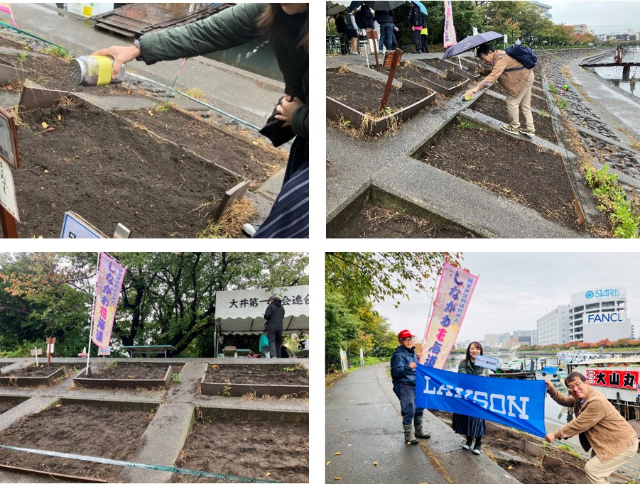 株式会社ローソンは2025年11月9日(日)、「しながわ花海道 菜の花の種まきボランティア」に参加しました。この活動は、勝島運河沿いの約2kmにわたる「しながわ花海道」の環境美化を目的としたものです。