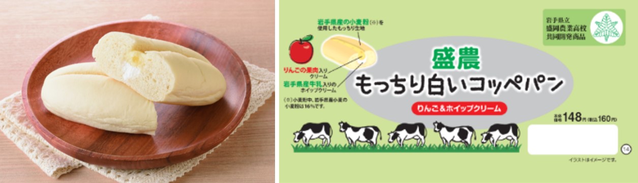 今回の商品は、岩手県産小麦粉を一部使用したもっちりとした食感のコッペパンに、岩手県産牛乳入りのホイップクリームとりんご果肉入りのクリームをサンドした、岩手県のおいしさを感じられる商品です。