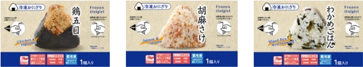 今回販売を拡大する商品は、工場で製造したおにぎりを冷凍した、「鶏五目おにぎり」(税込157円)、「胡麻さけおにぎり」(税込140円)、「わかめごはんおにぎり」(税込140円)の3品です。冷凍おにぎりは、作り置きすることで製造コストの削減が可能で、通常のおにぎりと比べて価格を1~2割抑えることができ※、賞味期限が約1年であることから食品ロスの削減にも繋がります。