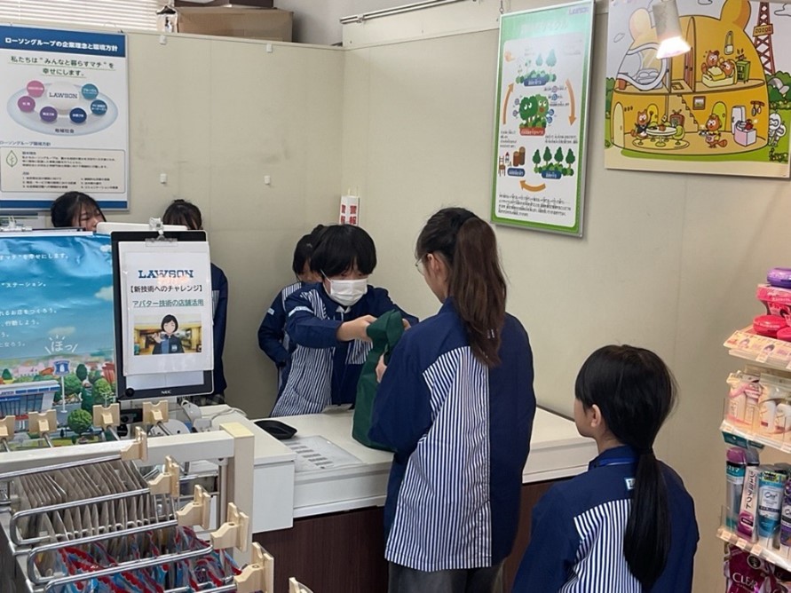 児童はローソンの新規採用社員として、模擬店舗での接客とAVACOM(アバター)での接客体験などの仕事体験やローソンのSDGsを考えるグループディスカッションと発表に取り組みました。