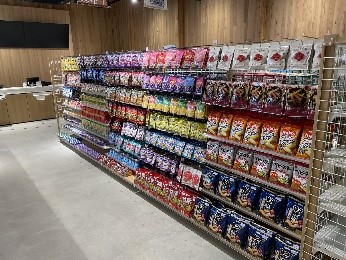 コンビニ店舗で使用していた菓子・加工食品・日用品などの商品を陳列する什器 |