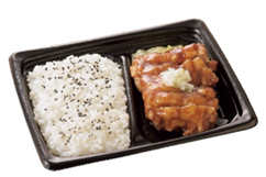 「五味八珍監修 油淋鶏弁当」 税込697円 静岡県を中心に店舗展開する中華ファミリーレストラン「五味八珍(ごみはっちん)」の人気メニュー「油淋鶏」を再現したお弁当です。酸味と甘みが効いたタレで味付けした油淋鶏は、ご飯との相性抜群です。 |