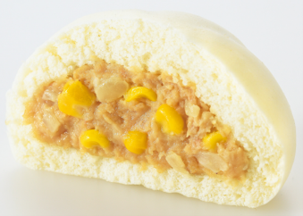 「シーチキン&コーンまん」 税込238円 「はごろもフーズ」の「シャキっと!コーン®」と「シーチキン®」をふんだんに詰め込んだ、シャキっと!コーン®とシーチキン®のハーモニーを楽しめるボリューム感ある中華まんです。 |