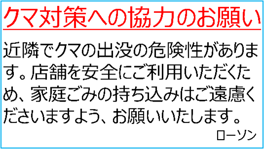 ・クマがローソン店舗に近づかない様に、低周波発生装置の設置を専門家など各所に相談しながら