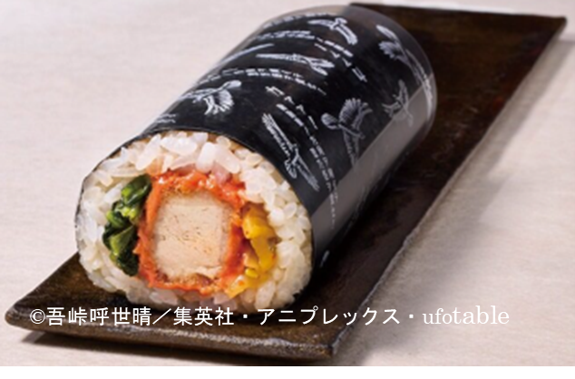 「鬼滅の刃」恵方巻(税込1,480円) 棒ヒレカツ、小松菜、はり漬け(※)にオーロラソース(※)を合わせました。 ※:切り干し大根の漬物
