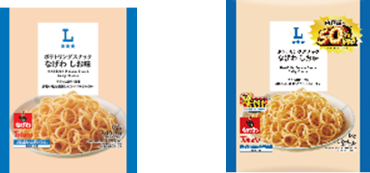 「ローソンオリジナル ポテトリングスナック なげわ しお味 50%増量 93g」(税込130円) 従来品の「ポテトリングスナック なげわ しお味 62g」と比較して、内容量を約50%増やしました。 サクっと軽い食感で赤穂の塩を使用したシンプルな味わいです。 ※ナチュラルローソンでの販売はありません。 ※約29万食(供給可能数量) |