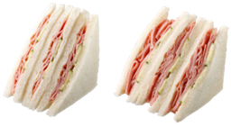 「盛りすぎ!ハムサンド」(税込343円) 従来品の「ハムサンド」と比較して、ハムを約50%増やしました。 旨みあるハムを楽しむサンドイッチです。きゅうりの食感とからしマヨネーズの味わいをアクセントにしました。 ※約117万食(供給可能数量) |