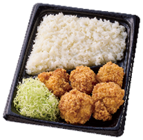 「盛りすぎ!鶏のから揚げ弁当」(税込592円) 従来品の「鶏のから揚げ弁当」と比較して、鶏のから揚げの個数を50%以上増量の8個入りにしました。 衣がサクサクな鶏のから揚げが入ったお弁当です。 ※沖縄での販売はありません。北海道では仕様・価格が異なります。 ※店内調理サービス「まちかど厨房」導入店舗(約9,000店)にて発売。 |