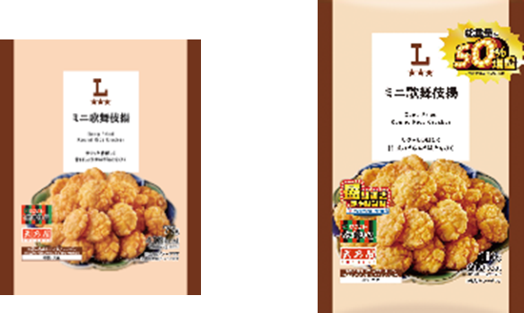 「ローソンオリジナル ミニ歌舞伎揚 50%増量 116g」(税込148円) 従来品の「ミニ歌舞伎揚 77g」と比較して、総重量を約50%増やしました。 サクっと香ばしく、甘口しょうゆ味があとをひく味わいです。 ※ナチュラルローソンでの販売はありません。 ※約29万食(供給可能数量) |