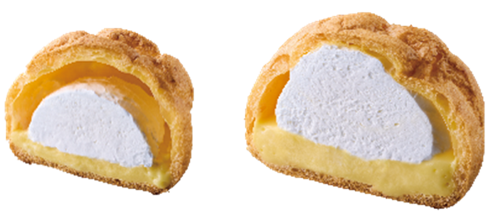 「盛りすぎ!大きなツインシュー」(税込151円) 従来品の「大きなツインシュー」と比較して、カスタードクリームとホイップクリームの量を約50%増やしました。 卵のコクとなめらかな口当たりのカスタードと、北海道産練乳を使用したホイップクリームの2層仕立てのシュークリームです。 ※沖縄での販売はありません。沖縄では「盛りすぎ!ダブルクリームシュー」を販売します。 ※約127万食(供給可能数量) |