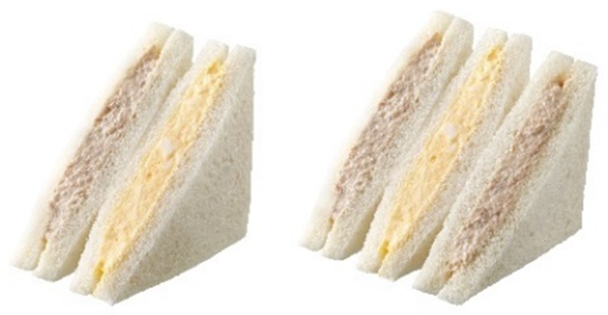 「盛りすぎ!ツナたまごサンド」(税込297円) 従来品の「ツナたまごサンド」と比較して、ツナサラダを約50%増やした、3層のサンドイッチです。 たまごサラダ、ツナサラダを、ふんわり食感の食パンでサンドしました。 ※約147万食(供給可能数量) |