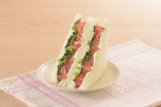 「いわき小名浜菜園トマト使用 トマトとクリームチーズサンド」:税込383円 福島県いわき市小名浜菜園のトマトを使用したサンドイッチです。トマトに相性のよいバジルクリームチーズを使用しています。 |
