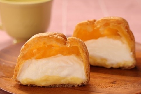 カスタードクリームとホイップクリームを、シュー生地の中に詰めました。今回の値下げに合わせて、カスタードクリームにバニラシードを加え、バニラの風味をお楽しみいただけるように仕立てました。 |