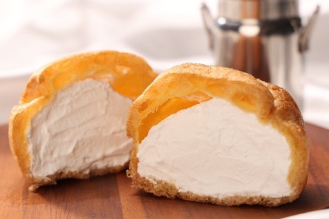 北海道産の牛乳・練乳を加えたミルククリームにホイップクリームを合わせ、シュー生地の中に詰めました。 |