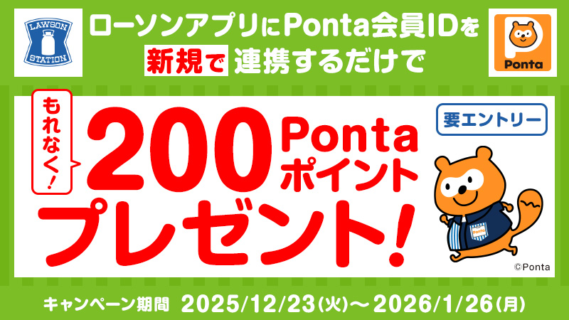 ■対象期間中にローソンアプリにPonta会員IDを新規で連携すると、もれなく200ポイントをプレゼント!