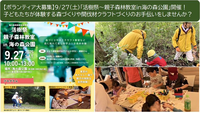 【参加者募集】9月27日(土)「活樹祭~親子森林教室in海の森公園」ボランティア活動 ※締切9月23日(火)