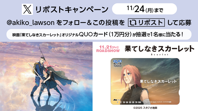 11月21日公開 細田守監督最新作『果てしなきスカーレット』公開記念 フォロー&リポストキャンペーン!
