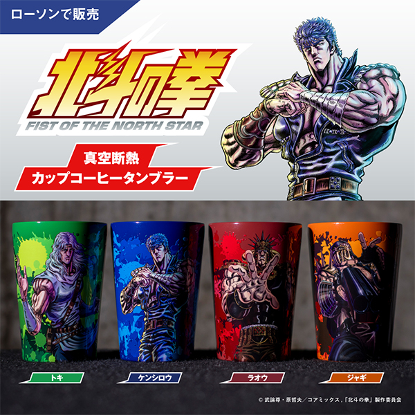 4月24日 アニメ北斗の拳からケンシロウ・ラオウ・トキ・ジャギ4種の真空断熱タンブラーが登場!ローソン・HMV&BOOKS onlineで発売
