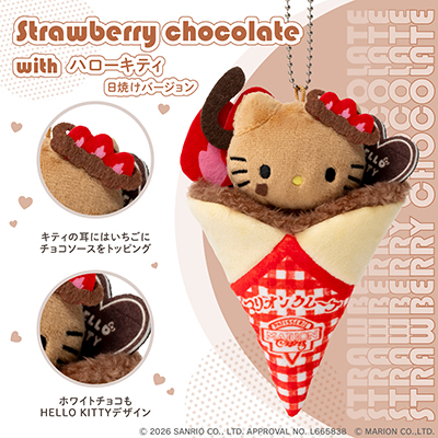 チョコづくしのクレープに日焼けキティが包まれたいちごチョコショコラキティ。