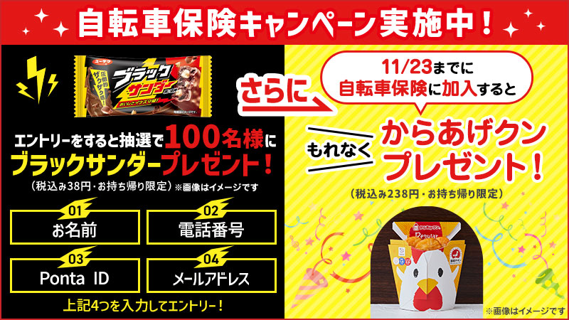 さらに期間中に自転車保険に加入いただいた方には