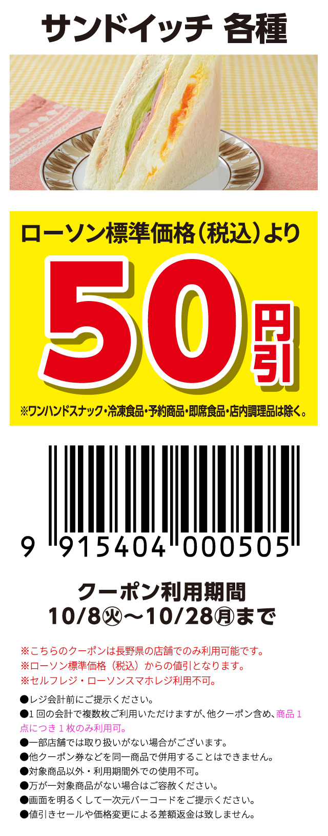 【長野県限定】サンドイッチ 各種 50円引クーポン