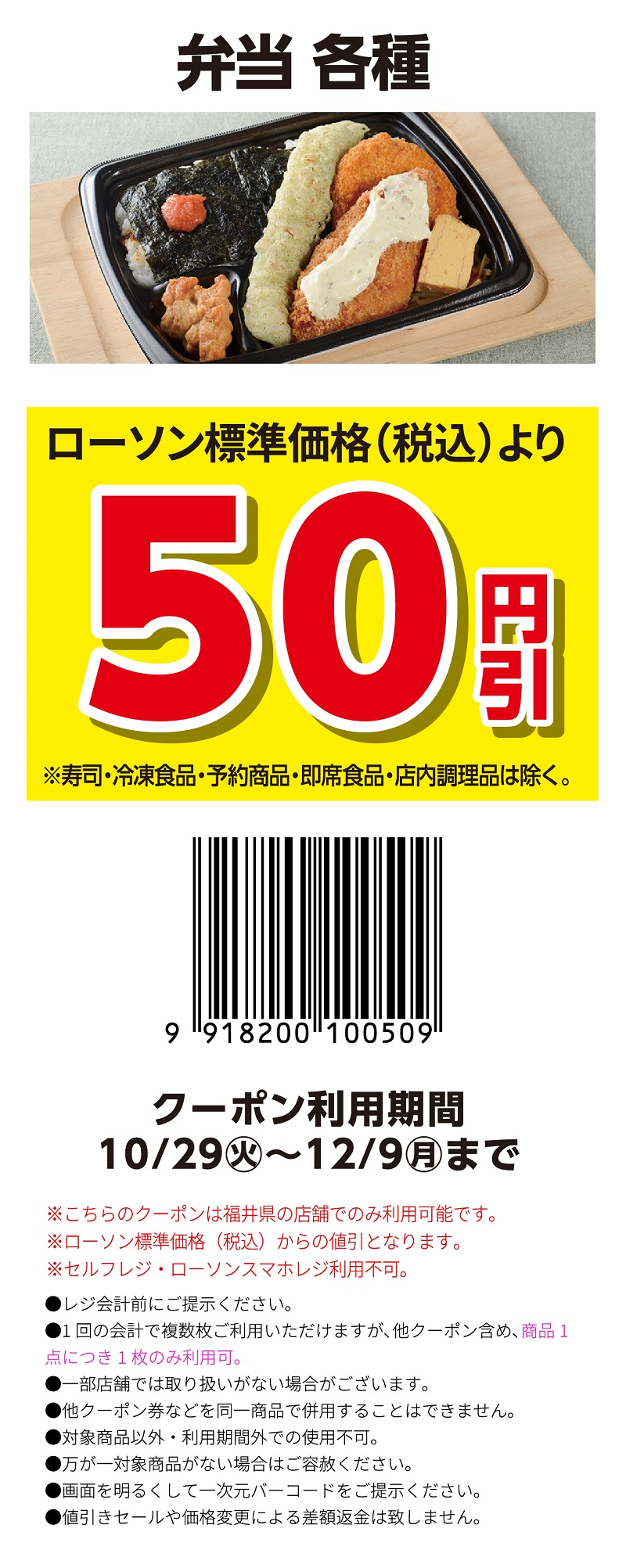福井県限定のローソンで使えるクーポンをプレゼント!