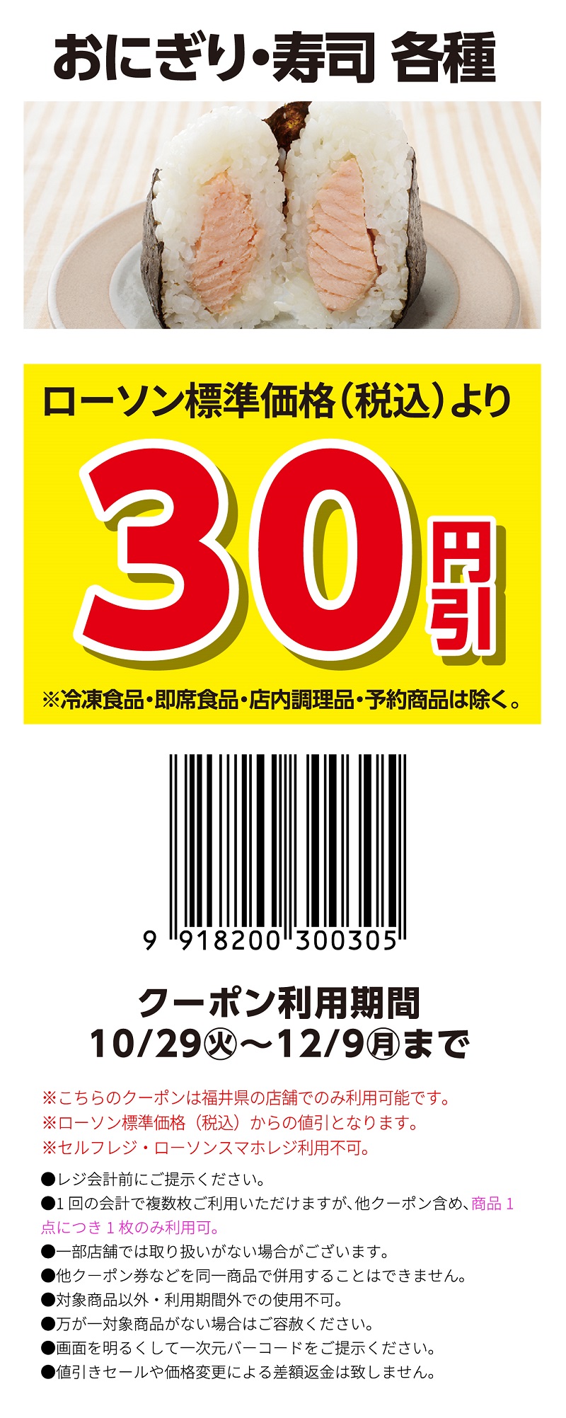 【福井県限定】おにぎり・寿司 各種 30円引クーポン