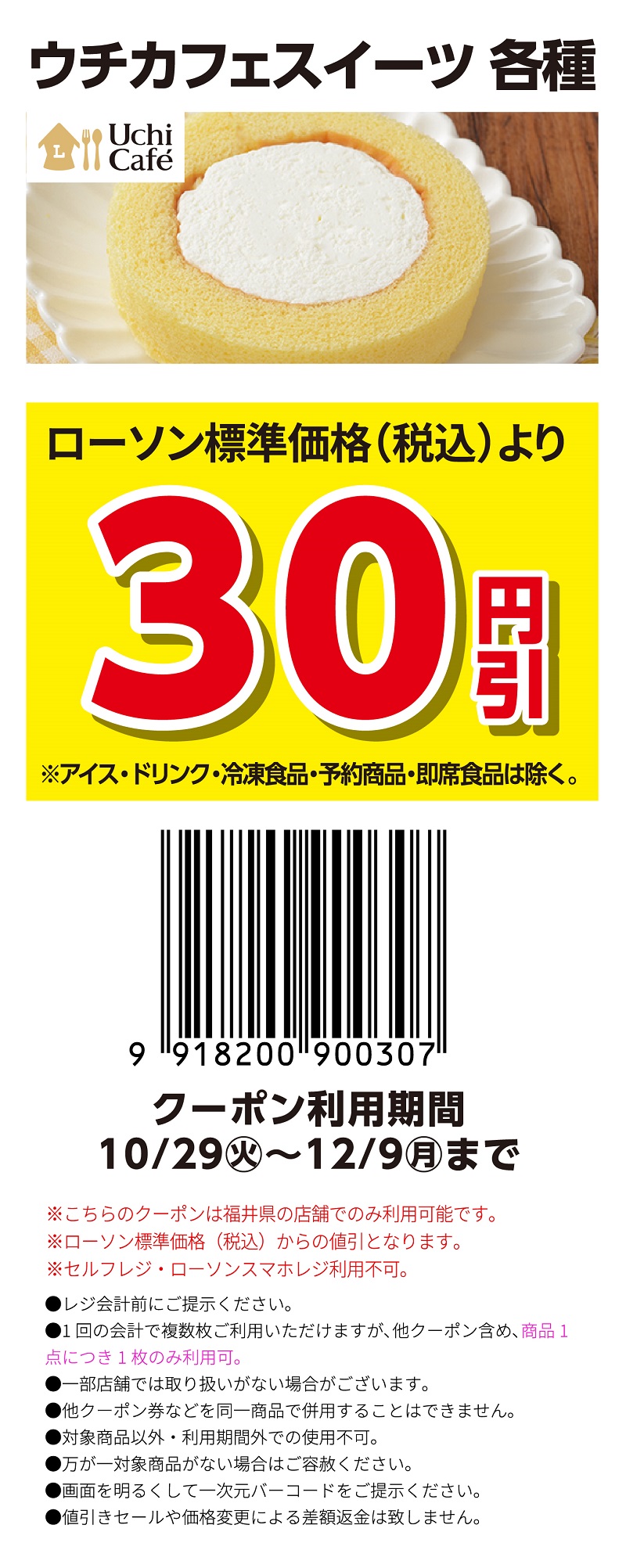 【福井県限定】ウチカフェスイーツ 各種 30円引クーポン