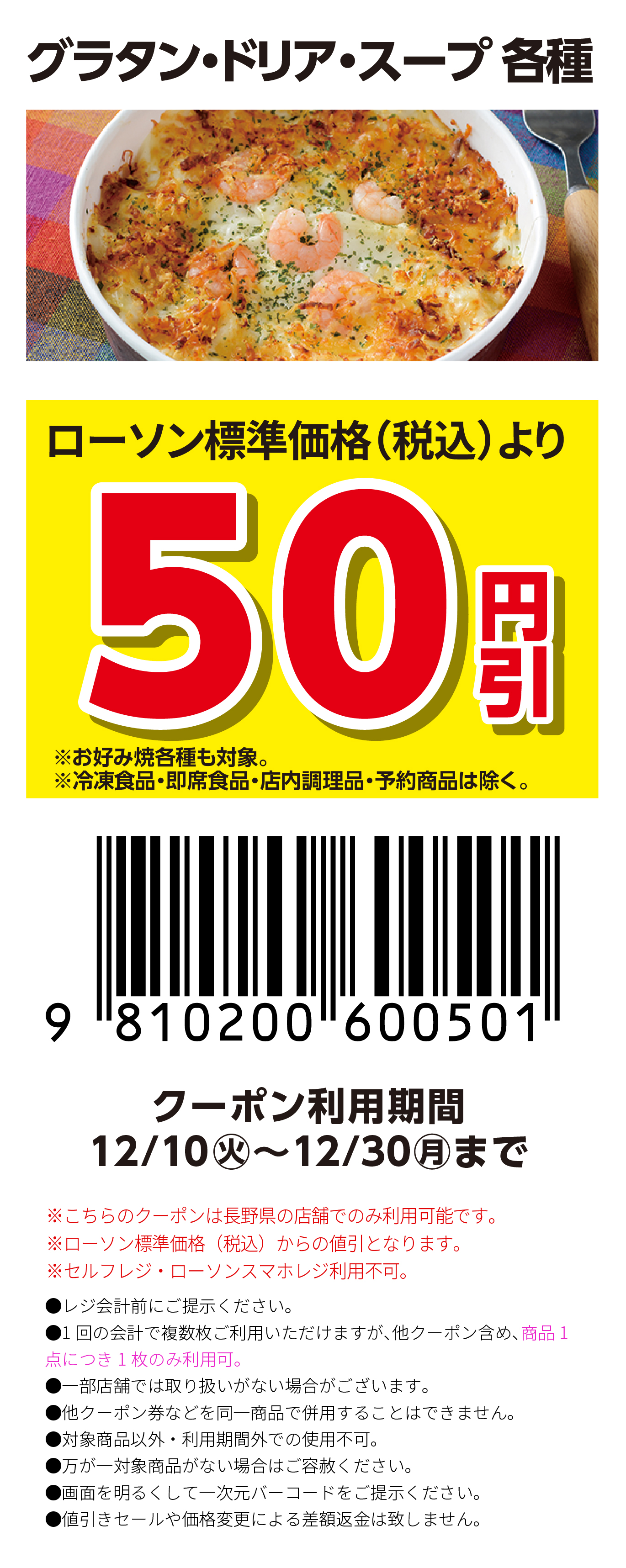 【長野県限定】グラタン・ドリア・スープ 各種 50円引クーポン