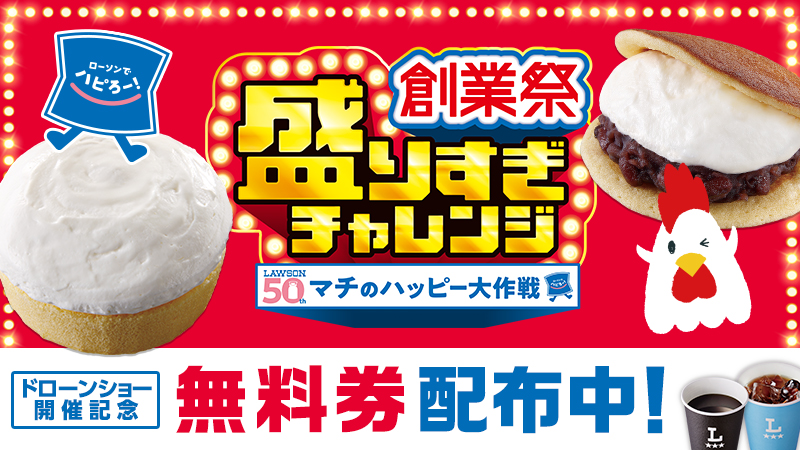 ドローンショー開催記念にローソンのマチカフェ コーヒーSの無料券(お持ち帰り限定)をプレゼント中。