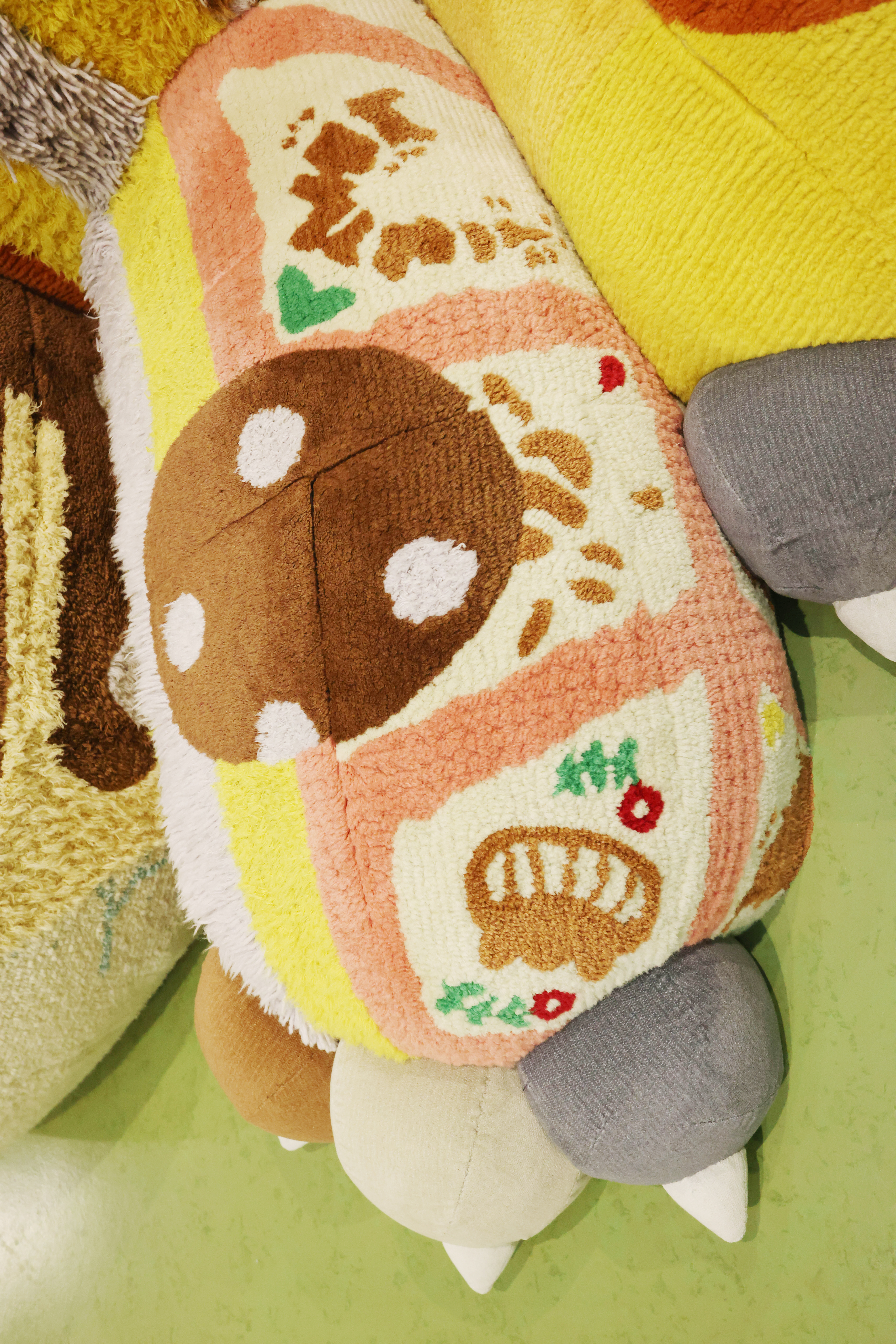 ▲パッチワークであるためさまざまな触り心地を楽しめるネコバス。かわいらしい絵柄があちこちにあしらわれているので、ぜひ探してみてほしい。