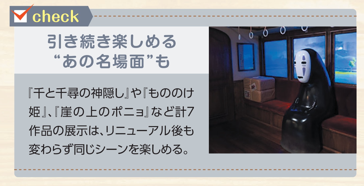ジブリの大倉庫で開催している「ジブリのなりきり名場面展」は、スタジオジブリ作品の名シーンを表現した展示の中に入り込める体験型の企画展示。昨年12月、全14コーナーのうち半数の7コーナーがリニューアルした。今回は、新しくなった展示をご紹介!