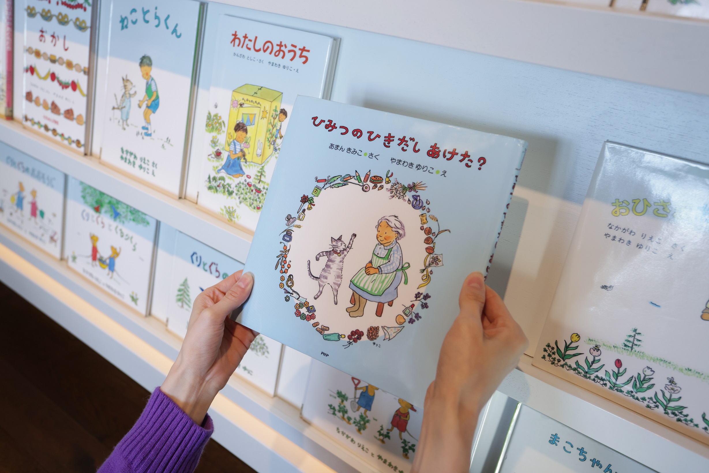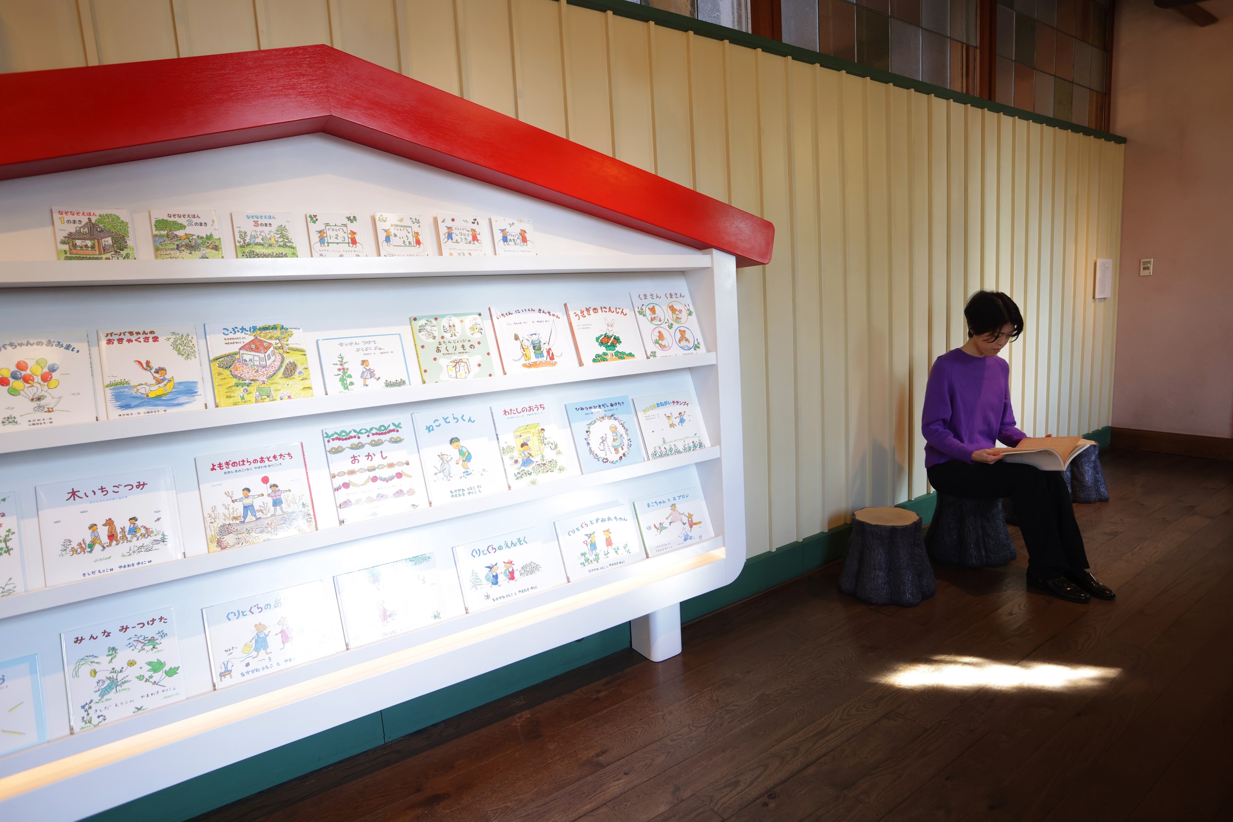 ▲飾られている絵本は図書閲覧室「トライホークス」で購入できるものもあるが、中には、すでに絶版になっている貴重な本もあり、ここでしか読めない本に出会えるかも。