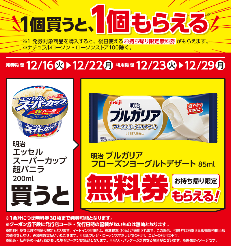 レシート無料券 発券期間 12/16(火)〜12/22(月)