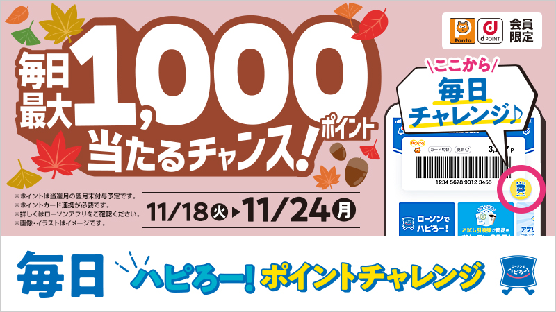 11/18(火)から!「ハピろー!ポイントチャレンジ」期間中に最大1,000ポイントが当たるチャンス!