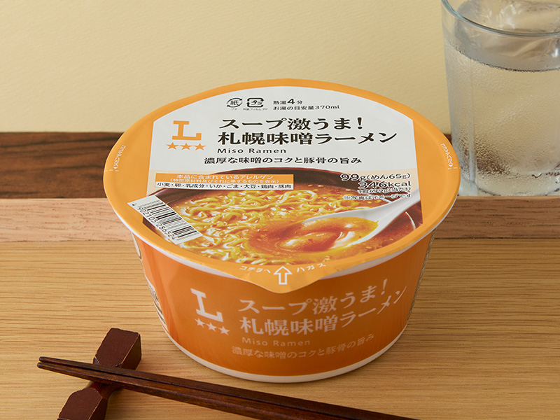 濃厚な味噌のコクと豚骨の旨みや香味野菜が利いた、奥深い札幌らしい味噌スープのカップ麺です。