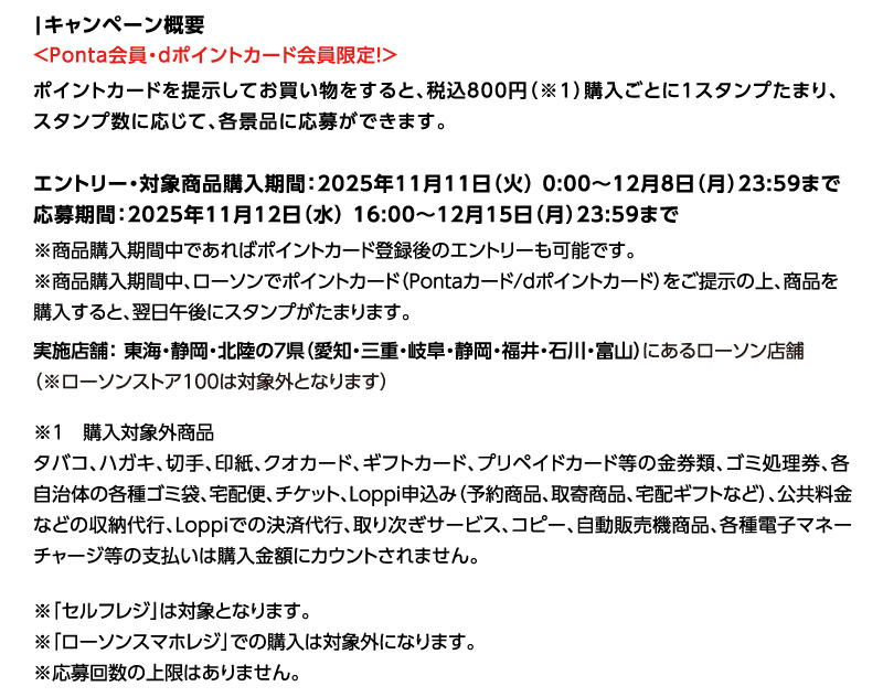 研究所通信 2025.11.11 【東海・静岡・北陸エリア情報】11/11(火)から開始!対象商品を購入し、ユニバーサル・スタジオ・ジャパン 1デイ・スタジオ・パスを当てよう! Ponta会員またはdポイントカード会員限定のキャンペーンです! キャンペーンに関するお問い合わせ