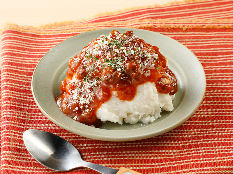 ミートソースの旨みとポテトサラダの組合せをお楽しみください。