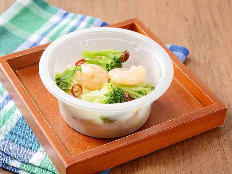 海老とブロッコリーの食感を味わう彩りデリサラダです。