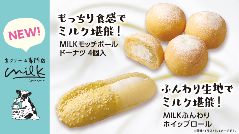「MILKモッチボールドーナツ 4個入」と「MILKふんわりホイップロール」をご紹介します