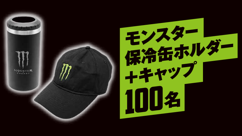2本で応募 – モンスター 保冷缶ホルダー + キャップ 100名様 ※インスタントウィン