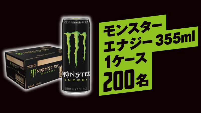 2本で応募 – モンスターエナジー355ml 1ケース(24本)200名様 ※インスタントウィン