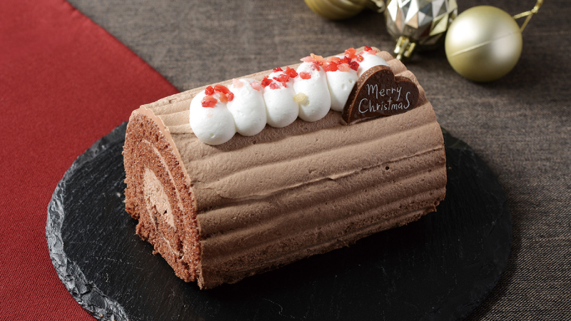 切り株をイメージしたクリスマスの定番ブッシュ・ド・ノエルを
