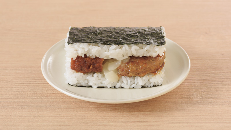 濃いめのデミソースとグラタンソースがご飯によくあい、Aセットを感じられるおにぎりです。