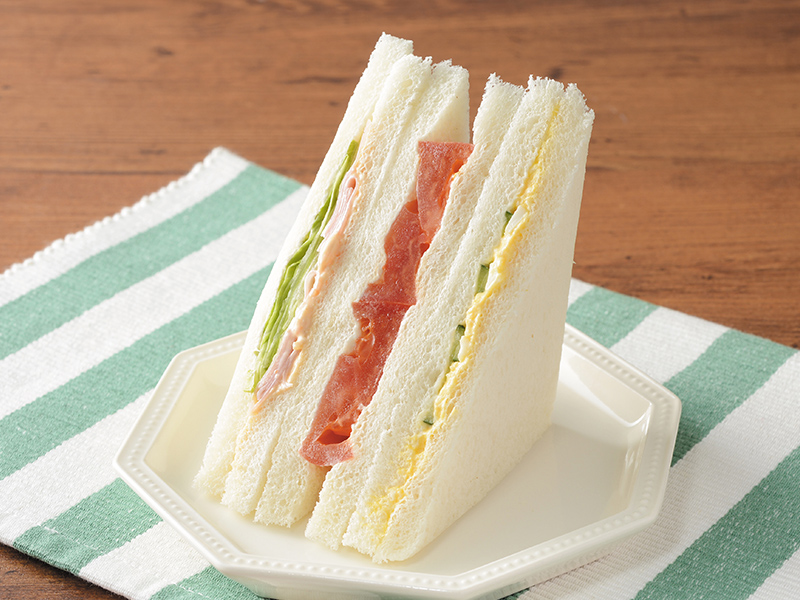 レタス・トマト・きゅうりを使用した3種類のサンドイッチを一度に味わえます。