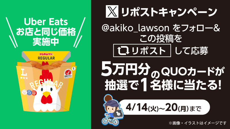 期間中、ローソン公式Xアカウント「ローソン(@akiko_lawson) 」をフォローし、対象ポストをリポストした方の中から抽選で1名様に以下の賞品をプレゼントいたします。