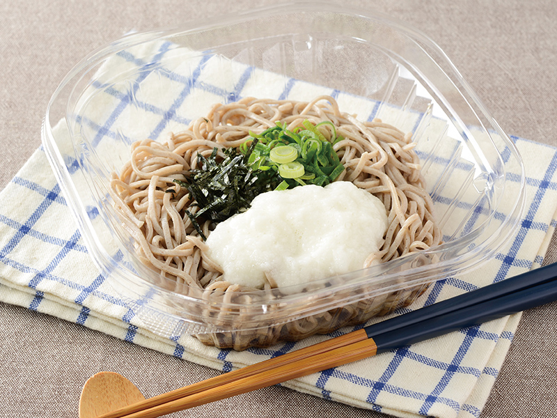 食べ応えのあるそばを当社従来品(冷しとろろそば)の約1.5倍盛り付けました。