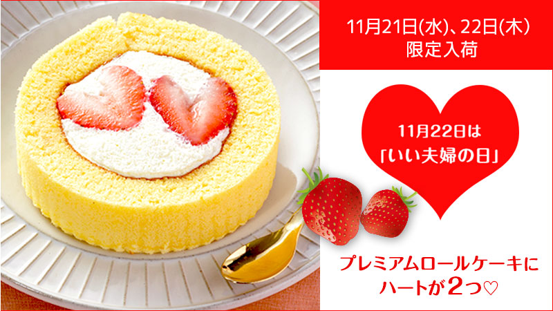 11月22日(木)は、いい夫婦の日!人気のプレミアムロールケーキにハートのいちごが!